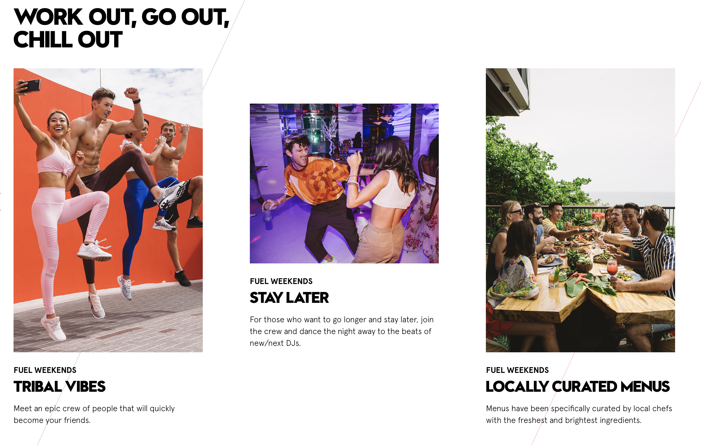 Purposed with evolving W Hotels’ global FUEL brand narrative and positioning to offer a distinct POV on health and wellness, Luca helped write and develop an integrative wellness experience and content hub for high-level fitness influencers and target consumers. It launched at W Hotels Punta de Mita for an exclusive 3-day weekend festival, spearheaded by some of the most influential names in the world of health, fitness, and wellness.